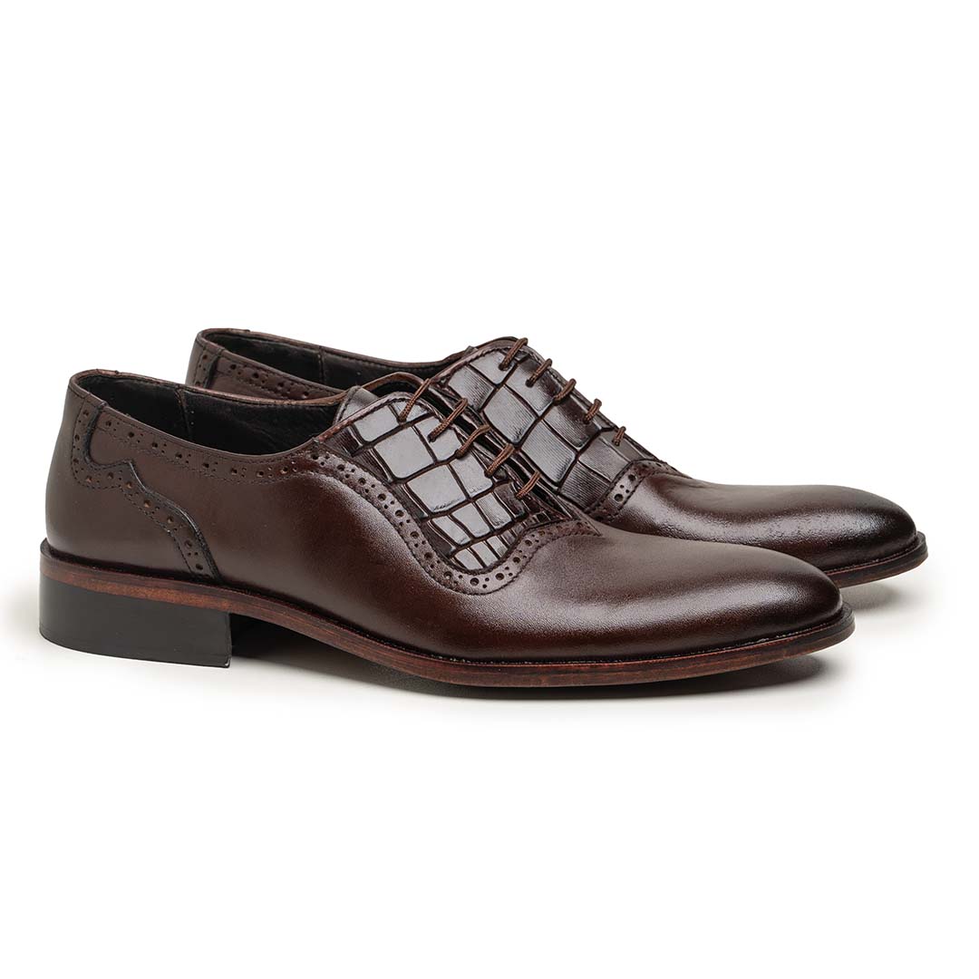 An Oxford shoe is the most classic and formal style of dress shoe, defined by its closed lacing system, where the eyelets are stitched under the vamp for a clean, streamlined look. The silhouette is sleek and structured, typically featuring an almond or rounded toe and minimal detailing.