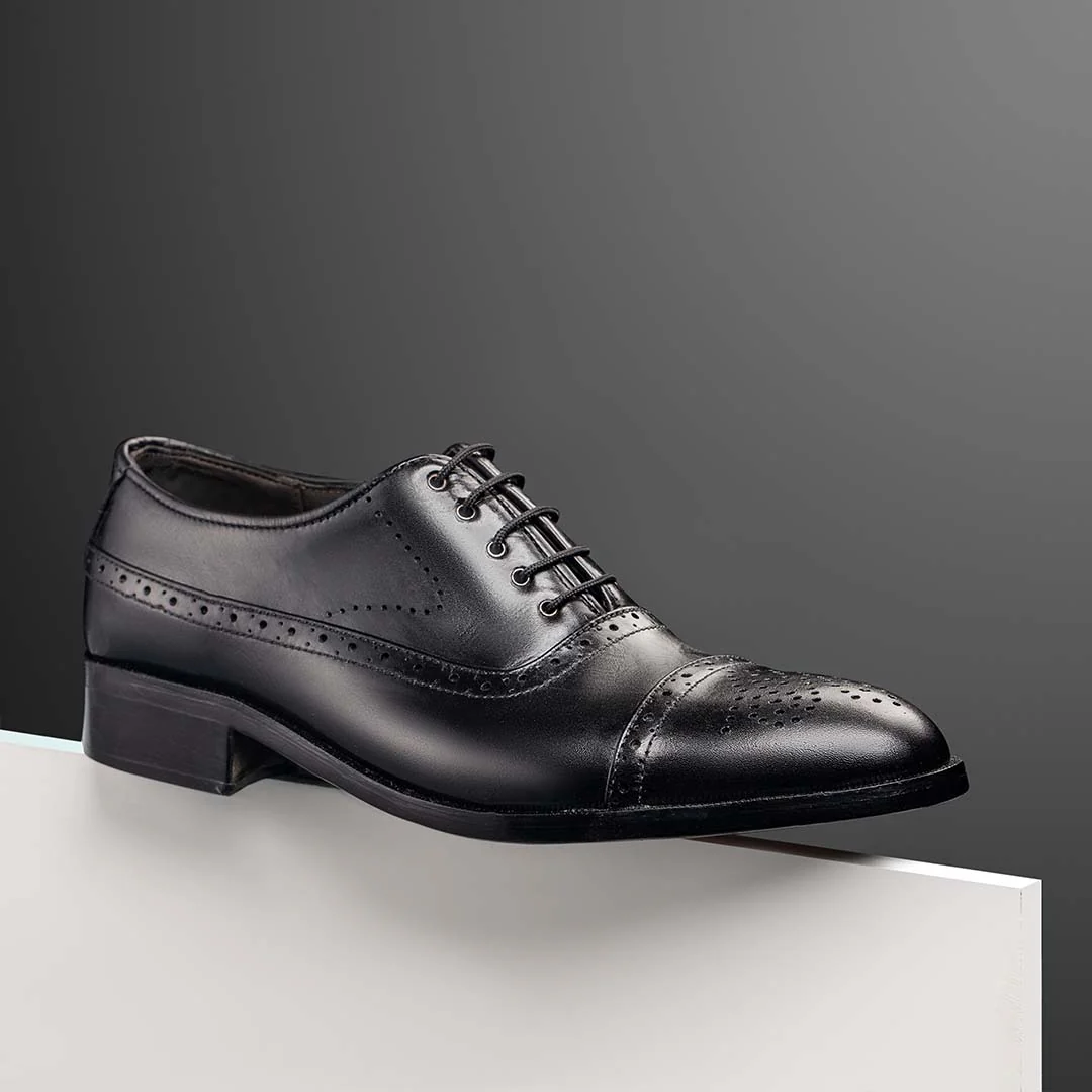 An Oxford shoe is the most classic and formal style of dress shoe, defined by its closed lacing system, where the eyelets are stitched under the vamp for a clean, streamlined look. The silhouette is sleek and structured, typically featuring an almond or rounded toe and minimal detailing.