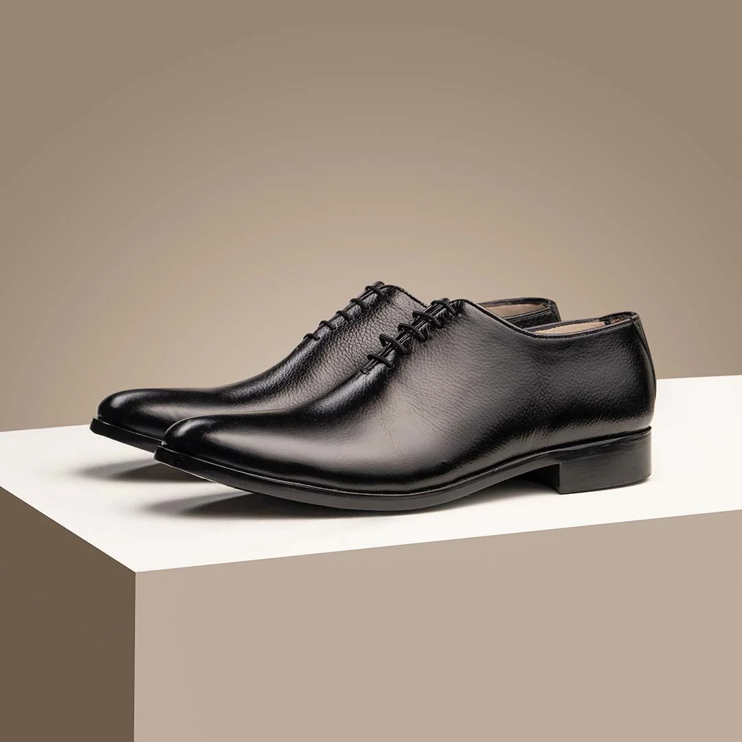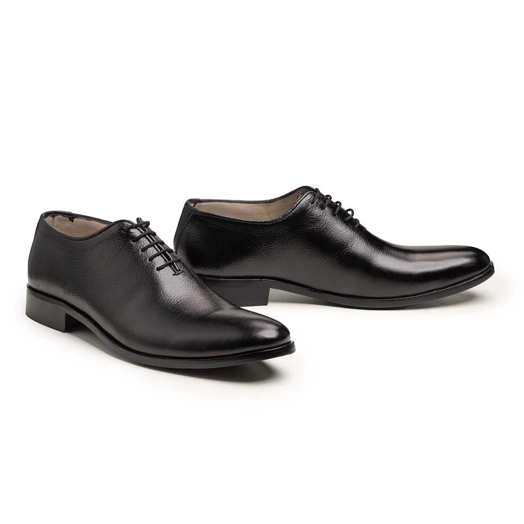 An Oxford shoe is the most classic and formal style of dress shoe, defined by its closed lacing system, where the eyelets are stitched under the vamp for a clean, streamlined look. The silhouette is sleek and structured, typically featuring an almond or rounded toe and minimal detailing.