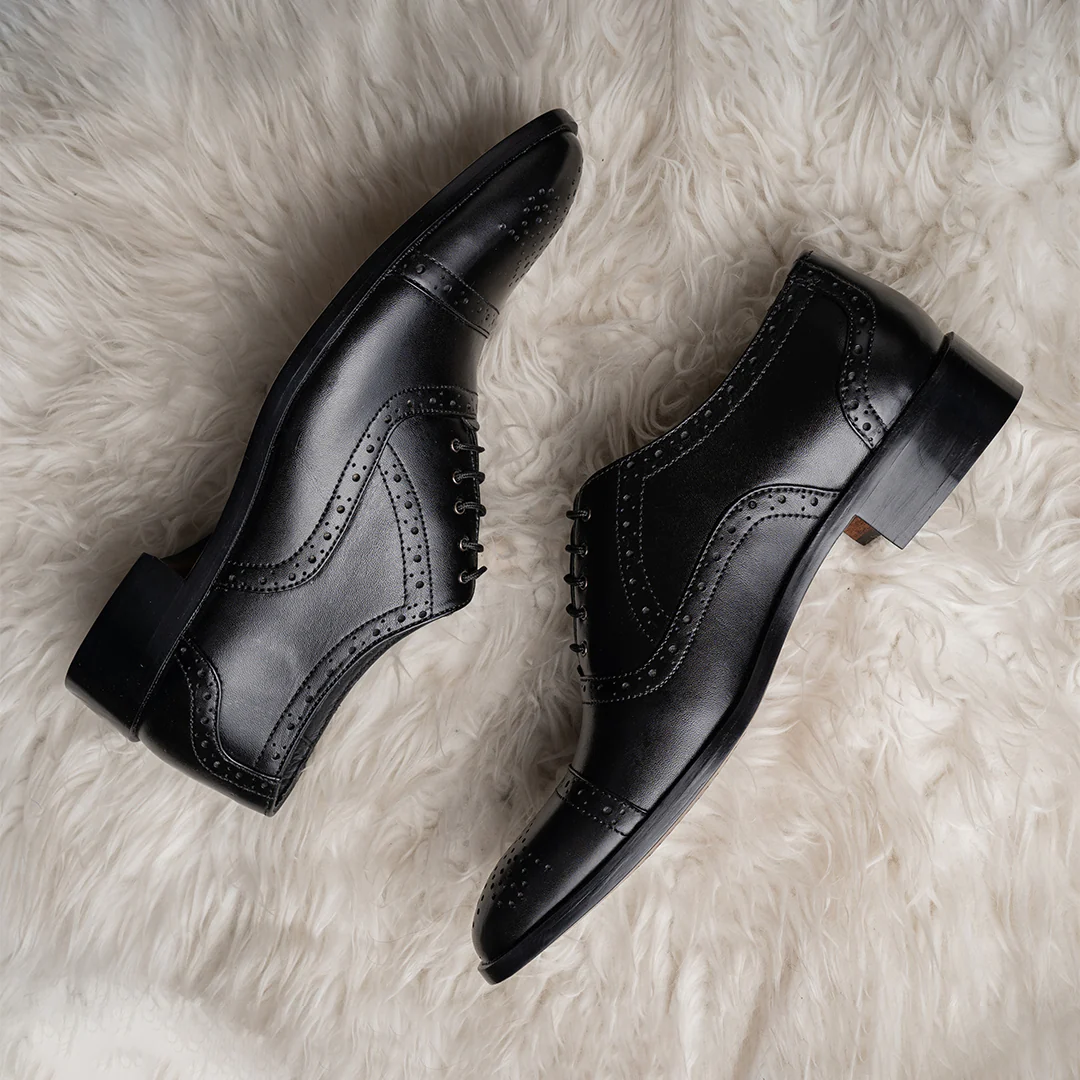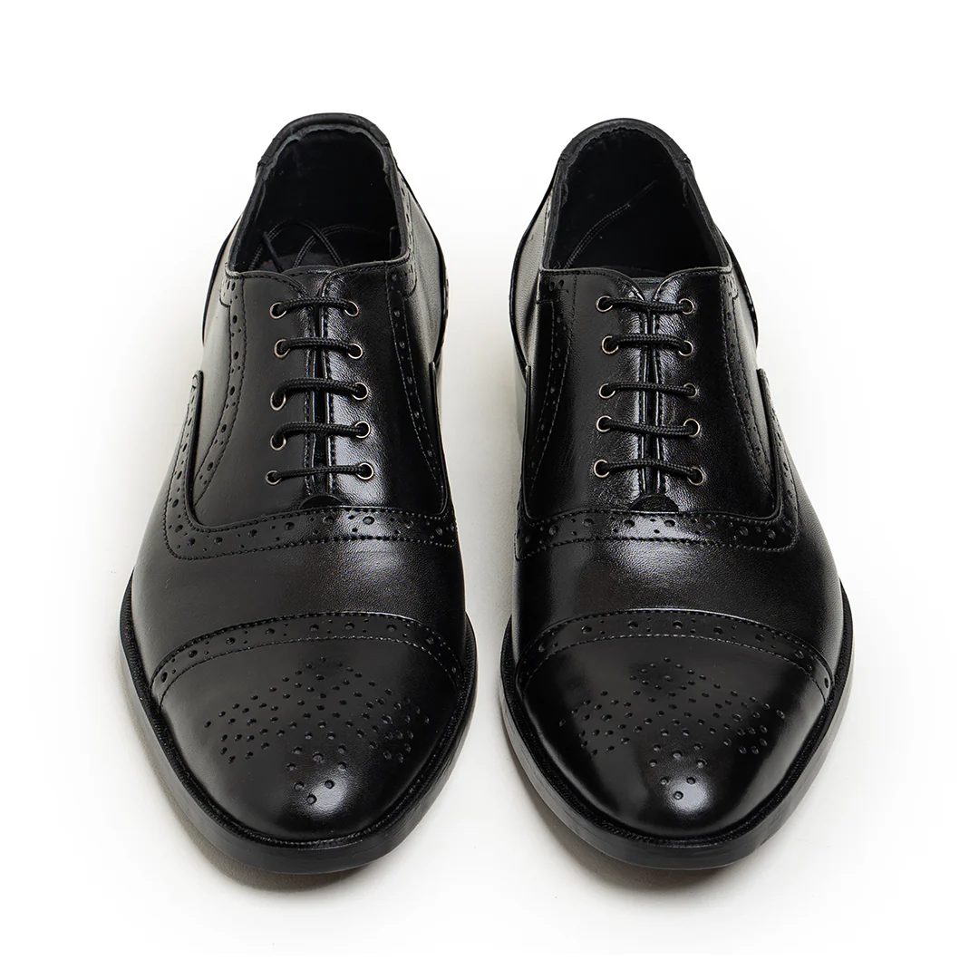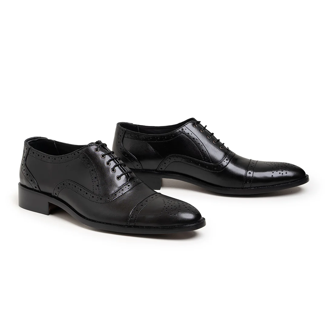 An Oxford shoe is the most classic and formal style of dress shoe, defined by its closed lacing system, where the eyelets are stitched under the vamp for a clean, streamlined look. The silhouette is sleek and structured, typically featuring an almond or rounded toe and minimal detailing.